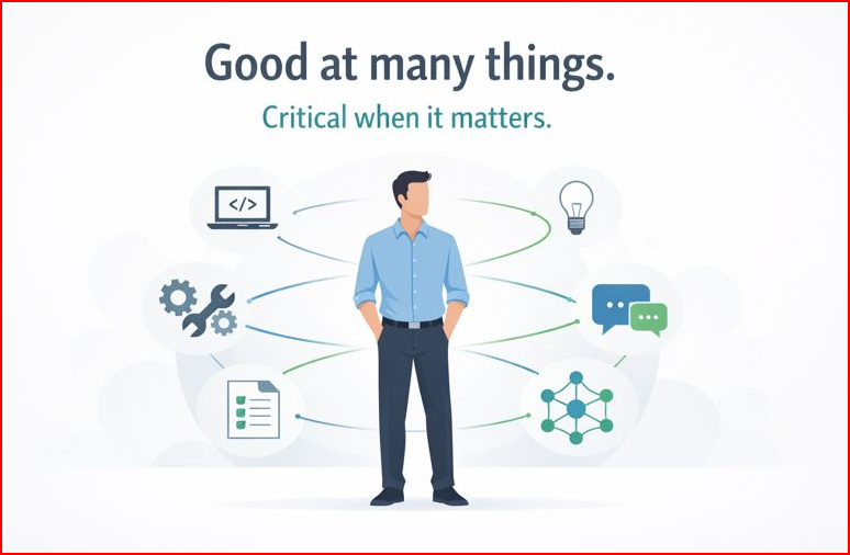 They can step into almost any situation, understand what’s happening, and help move things forward. They troubleshoot, connect dots, and adapt quickly when the plan breaks. Yet when asked to define their role, they often hesitate—not because they lack skill, but because they have experience across too many areas to reduce it to one label. In fact, having specialists expertise and being broadly skilled often means their contribution defies a simple description.